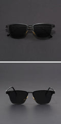 Step into timeless sophistication with our Titanium Metal Sunglasses – where luxury design meets cutting-edge comfort. Crafted for both men and women, these polarized shades redefine elegance with a retro-inspired half-frame silhouette.